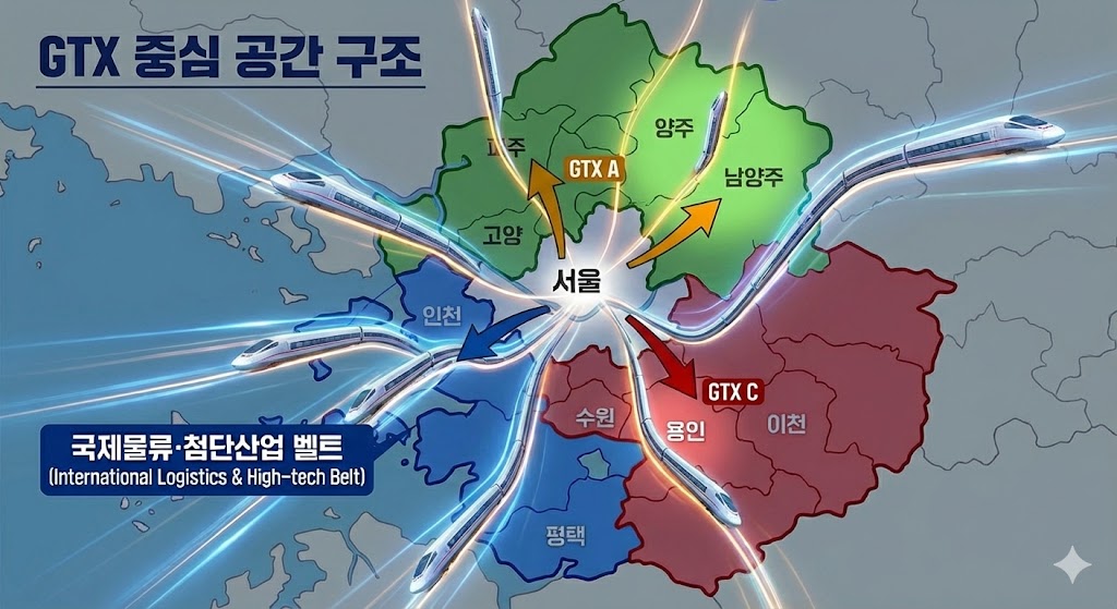 2026년 현재, 정부 로드맵의 핵심은 도로나 버스가 아닌 **'철도'**입니다. 단순히 서울로 가는 것을 넘어 수도권 주요 거점을 30분대로 연결하는 것이 목표입니다.