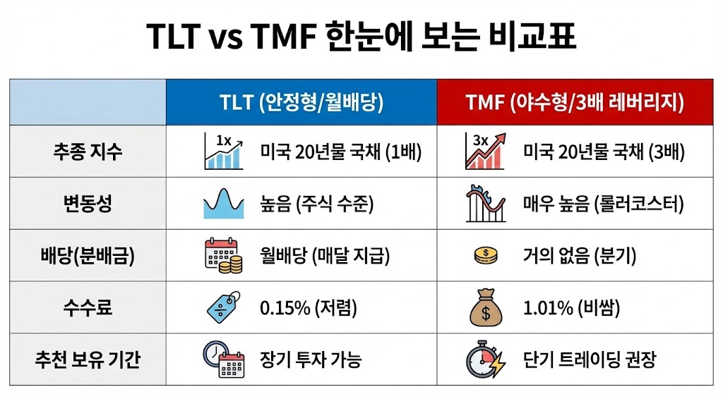 오늘은 미국 장기채 투자의 정석인 TLT와, 야수의 심장을 가진 분들을 위한 3배 레버리지 TMF의 차이점, 그리고 초보자가 절대 잃지 않는 안전한 투자 방법을 정리해 드립니다.