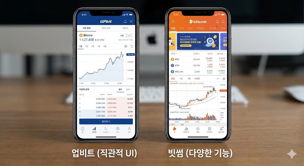 "그냥 남들 많이 쓰는 곳 쓰면 되는 거 아닌가?"라고 생각할 수 있지만, 두 거래소는 성격이 완전히 다릅니다. 내가 단타 위주인지, 장기 투자 위주인지, 주거래 은행이 어디인지에 따라 유리한 곳이 달라집니다.