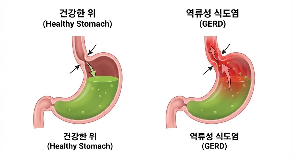 식사 후 명치 끝이 타는 듯이 아프거나, 신물이 올라와 밤잠을 설친 경험이 있으신가요? 현대인의 고질병이라 불리는 **'역류성 식도염(GERD)'**은 단순한 속 쓰림을 넘어 삶의 질을 급격히 떨어뜨리는 주범입니다.