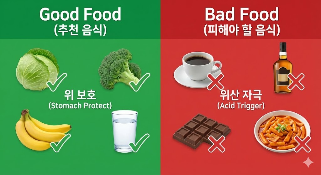 | 구분 | 추천 음식 (Good) | 피해야 할 음식 (Bad) |