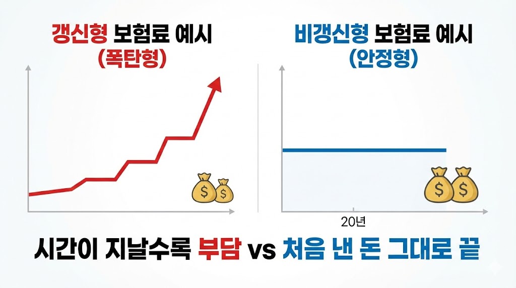 "갱신형은 나중에 보험료 폭탄 맞는다던데?" 반은 맞고 반은 틀립니다. 본인의 **'나이'**와 **'목적'**에 따라 정답이 다릅니다.