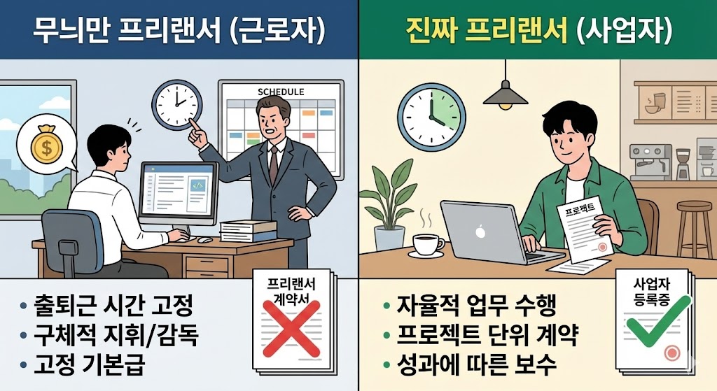 학원 강사님처럼 '프리랜서(사업소득자)' 계약을 맺은 경우, 근로기준법상 해고 제한 규정을 적용받기 어려울 수 있습니다. 하지만 **'실질적인 근로자성'**이 인정된다면 보호받을 수 있습니다.