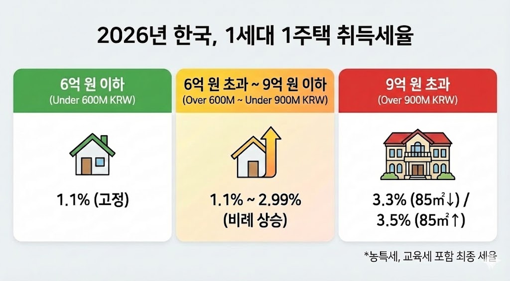 - 9억 원 초과: 3.3% (전용면적 85㎡ 이하) 또는 3.5% (85㎡ 초과)