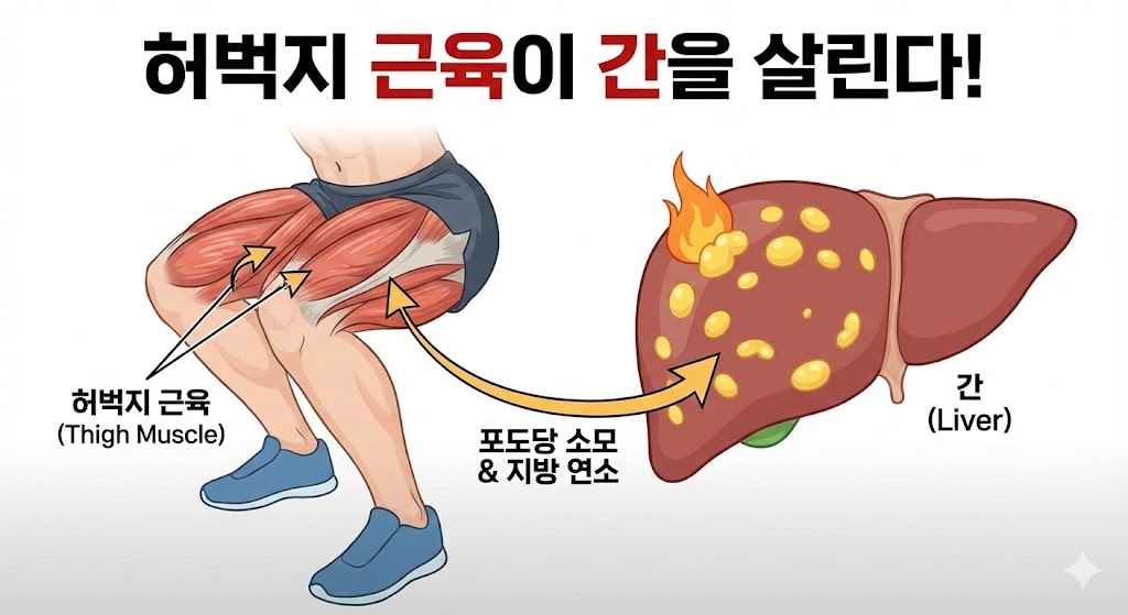 - 이유: 우리 몸의 근육 중 가장 큰 허벅지는 포도당을 스펀지처럼 흡수합니다. 근육이 늘어나면 잉여 에너지가 간으로 가지 않고 근육에서 소비됩니다.