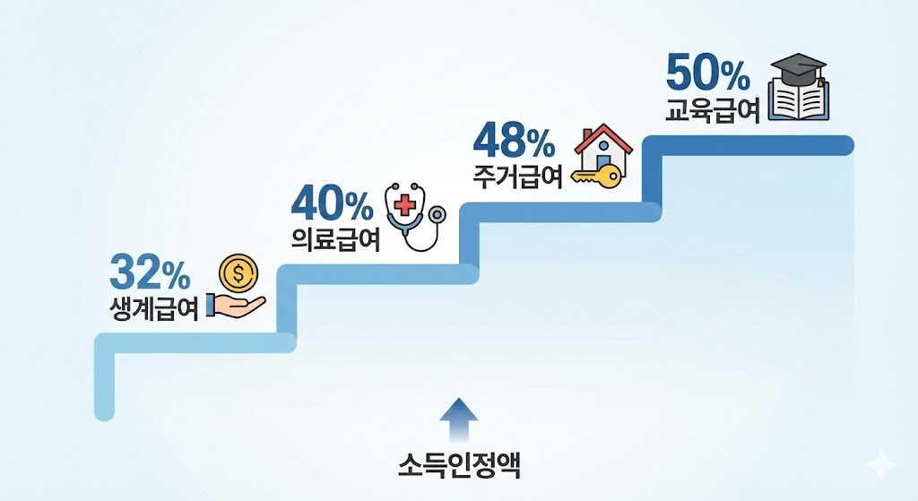 - 생계급여 (32%): 생활비(현금) 지원 (가장 중요!)