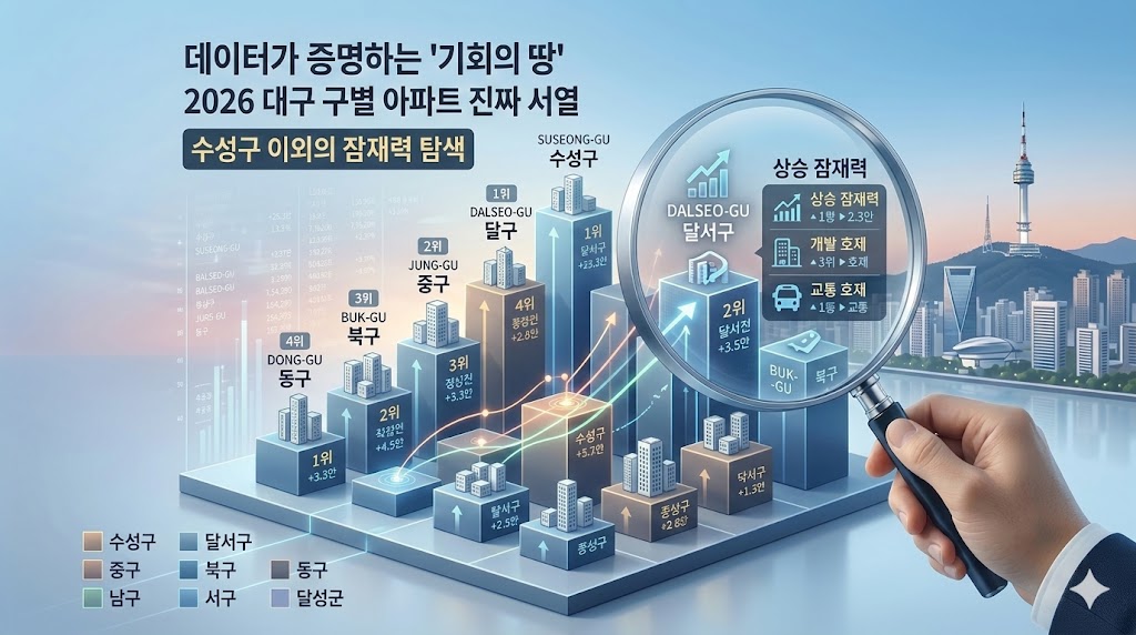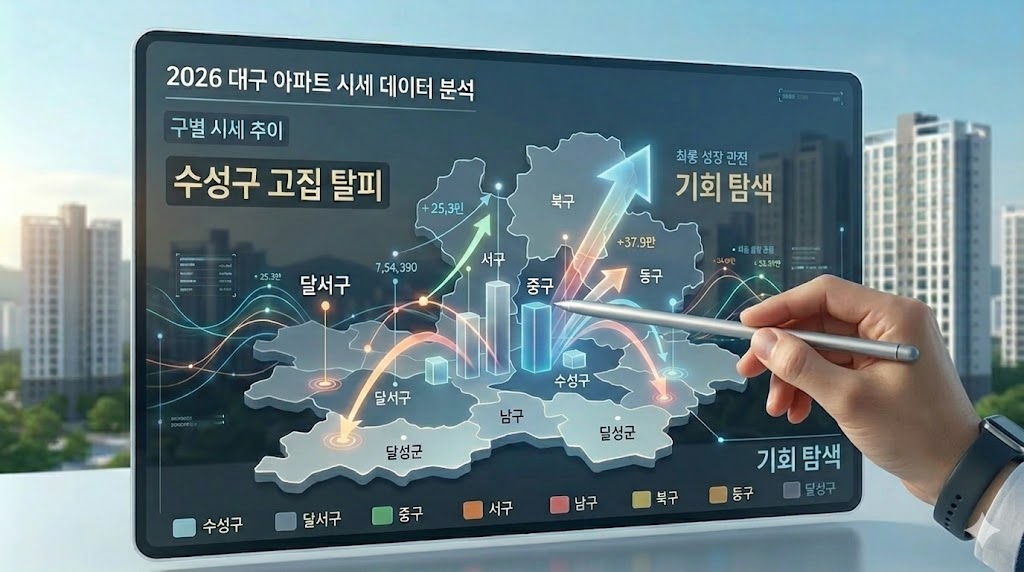 👉 [대구 아파트 시세 분석, 구별 비교 정리] : 재개발 '안전 마진'을 계산하기 위한 필수 단계! 대구 주요 구별 신축 아파트 시세를 정확히 파악해 보세요.