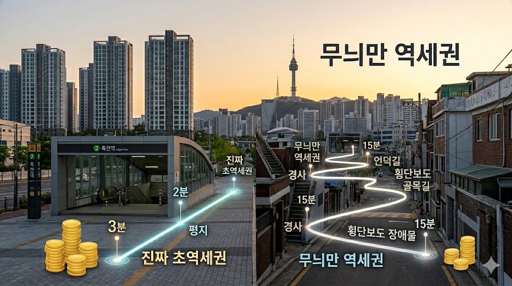 결국 지하철역까지의 '시간'이 단축될수록, 우리 집의 '자산 가치'는 그만큼 더 단단해지고 높아진다는 것을 알 수 있습니다.