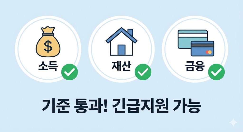 소득·재산·금융 3가지 기준만 충족하면, 당신도 긴급지원 대상이 될 수 있습니다.
