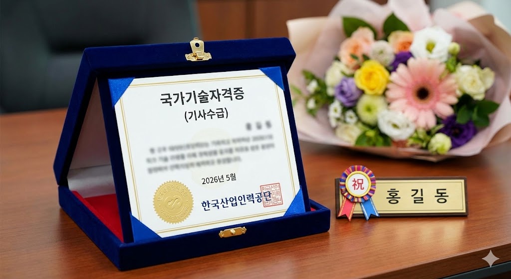 아래 이미지는 2026년 5월에 한국산업인력공단으로부터 수여받은 '국가기술자격증(기사)' 상패의 모습입니다.