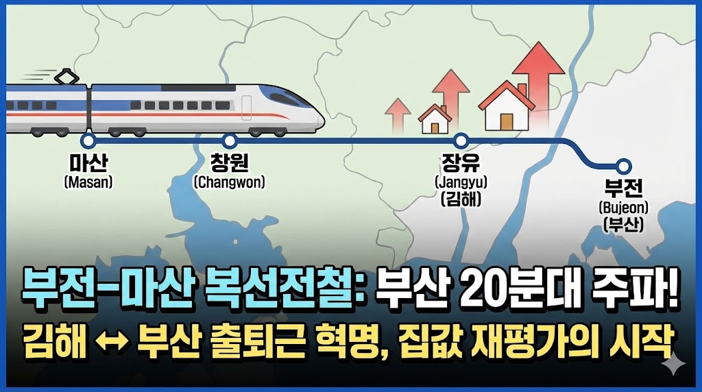 - 부전-마산 복선전철의 파급력: 장유역에서 부산 부전역(서면 생활권)까지 20~30분대에 주파가 가능해집니다. 이는 김해를 부산의 단순 위성도시가 아닌, **'부산 출퇴근 30분 컷'**이 가능한 핵심 주거지로 격상시키는 혁명적인 변화입니다. 장유역 인근 단지들의 가치 재평가가 시급합니다.