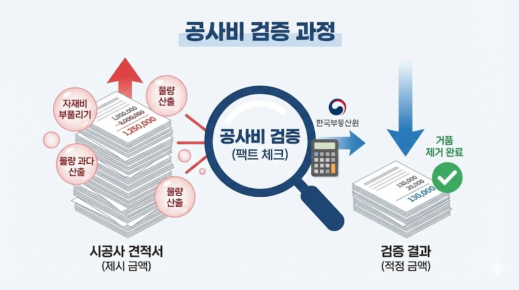 중요한 점은 공사비 검증 결과가 '법적 강제성'은 없다는 것입니다. 검증 기관이 "100억 깎으세요"라고 해도 시공사가 "싫습니다"라고 하면 그만입니다.