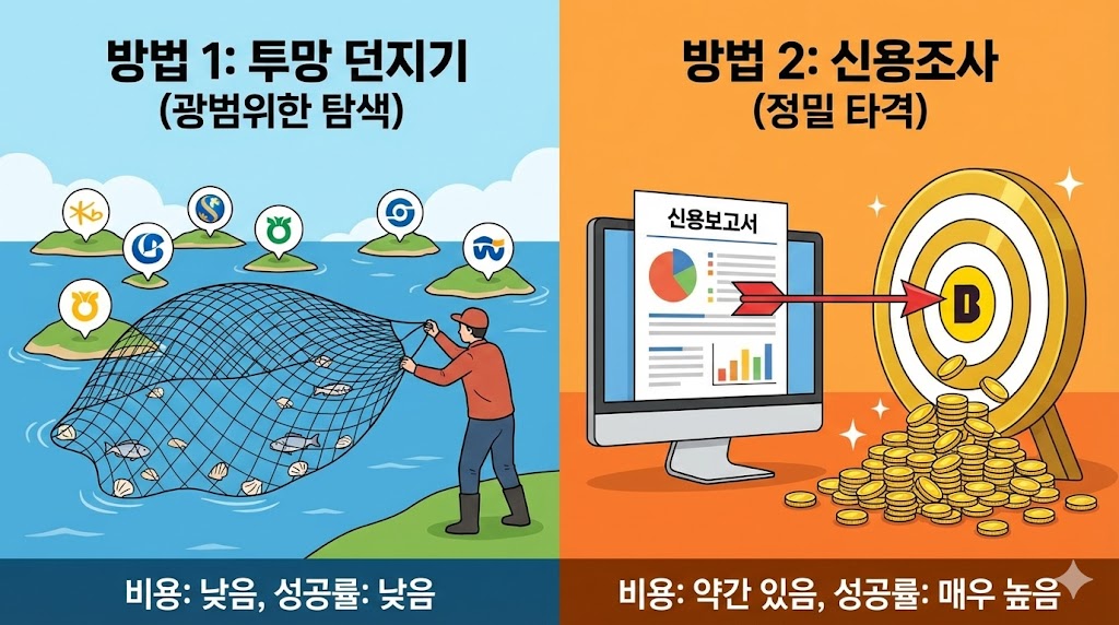 따라서 우리는 모든 은행에 그물을 던지는 것이 아니라, 돈이 묵직하게 들어있을 만한 '진짜 주거래 은행' 1~3곳을 정확히 찾아내어 작살을 던져야 합니다.