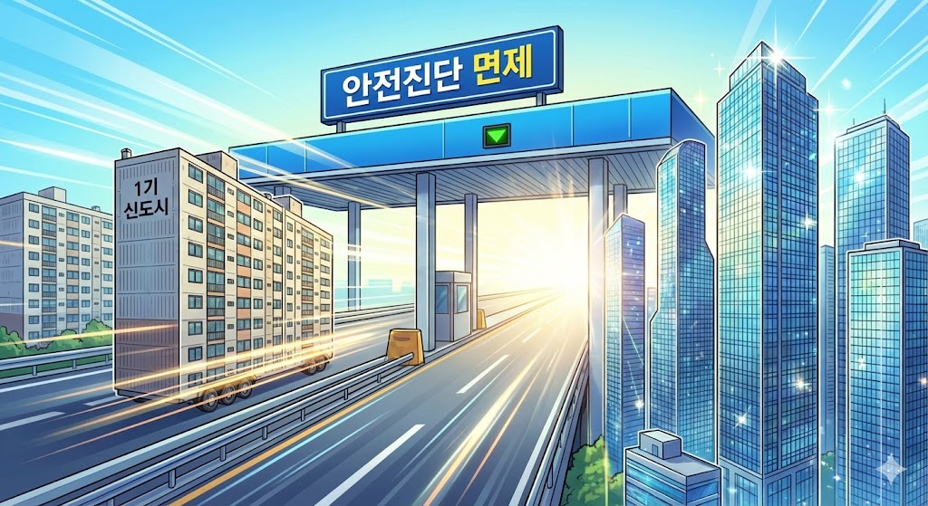 **'노후계획도시 특별법'**에 따라 통합 재건축을 추진하거나 공공 기여를 많이 하는 선도지구의 경우, 안전진단을 아예 면제해 줍니다. 이는 "너희는 낡은 게 확실하니 검사할 시간과 돈을 아껴 바로 사업해라"라는 정부의 강력한 시그널입니다.