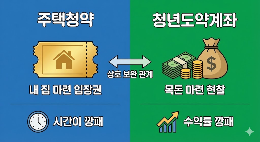 결론부터 말씀드리면, 둘은 비교 대상이 아니라 '상호 보완'의 관계입니다. 하나는 '목돈 만들기(종잣돈)'가 목적이고, 하나는 '내 집 마련(티켓)'이 목적이기 때문입니다.